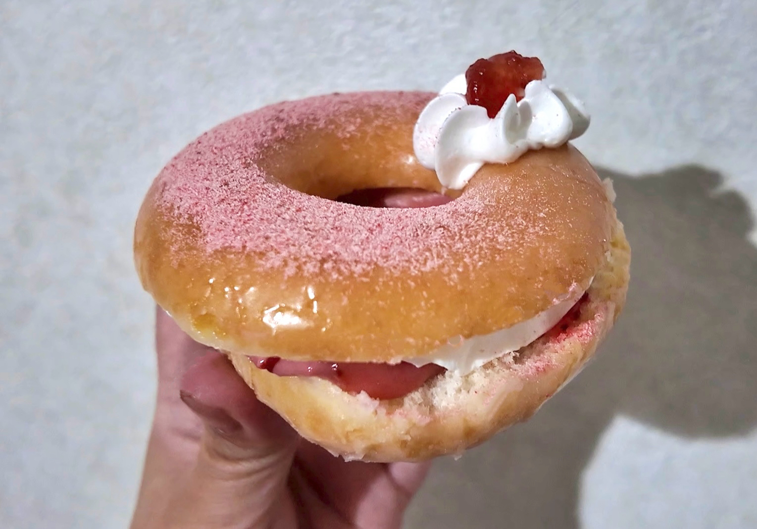 ちなみに、クリスピークリームではレアな、唯一の食事系ドーナツ「博多めんたい&チーズ」も美味しかったですが、甘党好き的にはやっぱりスイーツ系3種が推しでした。